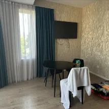 The room was nice, facing the street but with good soundproofing, not noisy. There was a parking lot with easy access, a rich breakfast, and outdoor balcony seating with a beautiful view overlooking Tbilisi. However, it was located in the downtown area, so there was a bit of traffic jam when entering and leaving.