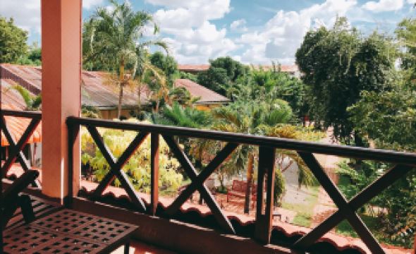 Travel Lodge is the ideal place for the price. It’s about 2 kilometers from the Mekong, but they rent affordable motorcycles, or it is a good way to get some exercise. Moreover, it has a really homey feel, with staff who are extremely friendly, and it sits back off the main road in a natural environment.