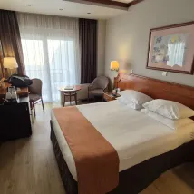 As I was on a business travel I cared only about quiet room to recover, the receptionist fulfilled my request and even more, I got an option of a late checkout at no extra cost. The breakfas was very good, the onle thing I was disappointex with was the drinks from sirup callex juices (in Greece!). Overally I am very happy with my stay, altough redecoration that takes place around the lobby area gives an odd first impression :)