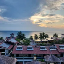 Great environment. Relaxing and doable. Great Sunrise except for occasional overcast. The beach is white. The size of the room is comfortable. Beds are big. The deluxe room has a small balcony which leads to the swimming pool and dining hall. The room is not the cleanest. Saw some baby cockroaches running around the bathroom. The pillows are way too soft. The Aircon power is very weak Occasional power trips.