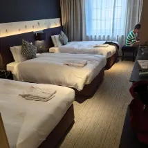 The room was very clean, and the kids were thrilled to each have their own bed! The subway station is very close, and the hotel is ideally located between Asakusa Temple and Shibuya, making travel to both areas equally convenient. Ginza is within walking distance. For trips to Osaka, Tokyo Station (for the Shinkansen) is just about a 10-minute walk, which is incredibly handy. Plus, there's a Pokemon Center about 10 minutes away on foot.