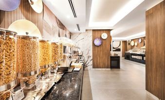 A complimentary buffet breakfast is served on weekdays from 7:00 AM to 10:00 AM and on weekends from 7:30 AM to 10:30 AM.