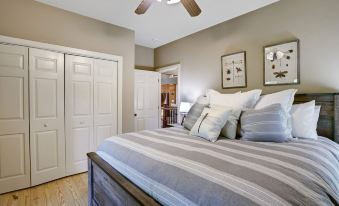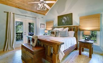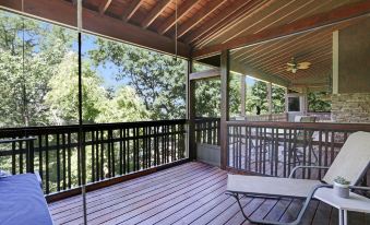 This four bedroom four bath cabin is amazing. There is a master suite on the main floor and another master suite on the terrace level. Television in every bedroom. Four king size beds, and two twin beds means there is room for everyone. Lake access with a dock and lots of beautiful features. The natural stone patio with built in firepit is the perfect place to sit and reconnect at the end of a day spent playing on the water. Come , sit, relax, and enjoy to mountains. It is all waiting for you at Chiefs Cove. We would like to make our potential guests aware that the walk down to the lake has a moderately steep slope. It is not suitable for people with physical limitations.