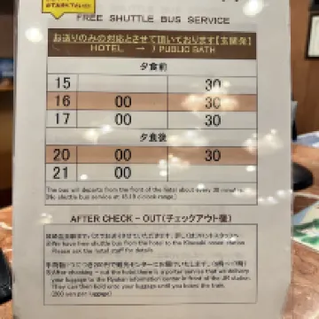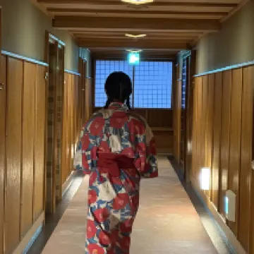 The hotel might be a bit far from the train station; I had to carry my own luggage on arrival, but there was a shuttle service on arrival. The hotel provides yukata and slippers for use in the onsen, and they even shuttle you to the furthest bath, allowing you to walk back. You can stop and enjoy different baths along the way. We bought our own food for breakfast, which was excellent, and ate at a restaurant outside for dinner. The atmosphere was great. It's a perfect place to relax.