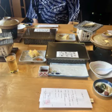 Although the hotel isn't right in the heart of Kinosaki Onsen, the town is small, so getting around is easy and convenient for visiting the seven public onsens. Don't forget to get your stamp at each one and collect a small gift back at the hotel! The hotel also has its own hot spring bath, it's not huge, but it's usually quiet as most guests go to the seven public onsens. Guests can enjoy a private onsen session once during their stay, and the view from the private bath's window is absolutely stunning. The hotel offers a 'one-night, two-meal' plan, and both breakfast and dinner were plentiful and delicious. The restaurant staff, including some ********* servers, provided detailed explanations of the dishes, and being able to communicate in Chinese was incredibly helpful.