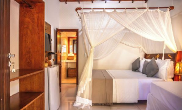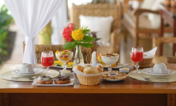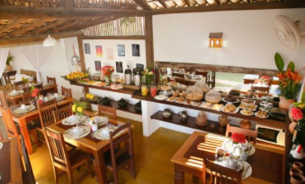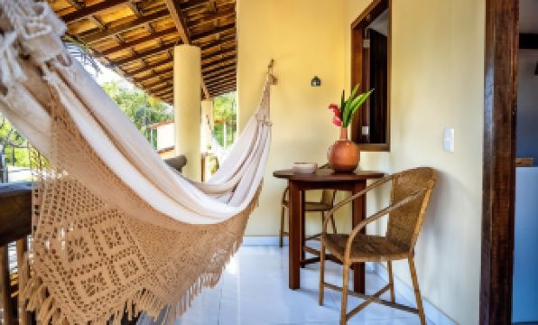 O ponto mais alto da pousada é a localização, fica em uma praça, ao lado de outras pousadas, e que já tem algumas atrações, como barraquinhas de acarajé e tapioca, e também artesanato. Além disso, é muito perto do quadrado de Trancoso, nem 5 minutos andando para os restaurantes. Fomos muito bem recebidos, chegamos antes do check in e deixamos as coisas na pousada, também nos indicaram passeios. Toda a equipe da pousada é atenciosa e educada. Em relação ao quarto, deixou um pouco a desejar. Ele é limpo e confortável, entretanto, no nosso caso, ficava de frente para a área do café da manhã e de passagem para outros quartos, e a porta era de varanda, sem janela. Sendo assim, não conseguíamos abrir a porta sem perder a privacidade. Também não tinha a opção de fechar uma cortina e deixar a porta aberta. Como ficava na frente do café, acordávamos antes do horário com a movimentação no local.