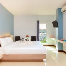 It’s a cute room with a balcony and decent air conditioner. The location is in a quiet neighborhood that is not too far from the airport.