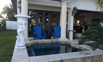 Built in 2012 two bedroom two bath sleeps 6 on the intercostal waterway with dock, pool/Jacuzzi Gourmet kitchen with a French Villa Cuisine. The home has a vanishing wall to let the outside in. Upgraded Tempur-pedic beds with Spa tubs in each bath. Located only two blocks from the beach and restaurants with several recreational equipment on site like paddle boards, fishing rods, bikes and other water sports. About pets:Pets allowed: dogs less than 20 lbs per pet (limit one pet total).One small dog no cats.About checkOut:Check out before 10:00 AM.About children:Children allowed: ages 0-17.The pool has a small shallow area for kids..About checkIn:Check in after 4:00 PM.About smoking:Smoking is not permitted.Out side on the property only. No smoking in home.About minBookingAge:Minimum age to rent: 21.About events:No events allowed.
