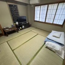 Although he doesn't speak English well, he is very kind. Since I don't speak Japanese well, I communicated with a translator, and he kindly explained the room, shared bathroom, etc. in detail.👍 Maybe it's because of the area, but it's dark from the moment you get off the station even at 7 PM. I think the business hours of nearby stores are short. There aren't many restaurants around the accommodation except for a convenience store. Instead, it's close to the ferry terminal to Nagoya Airport. I recommend it to those who want to experience a tatami room at a low price.