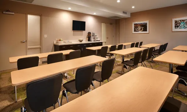 Cons - parking is HORRIBLE! It's like there are 20 very tight spaces for 75 people. The parking was an after thought for sure. Plus it was dark and just scary outside the hotel.