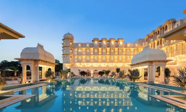 Nestled near the picturesque Fateh Sagar Lake Wyndham Grand Udaipur Fateh Sagar Lake invites you to experience the perfect fusion of modern luxury and timeless Rajasthani charm. Featuring palace-inspired architecture on a sprawling 26-acre property our amenity-rich pet-friendly resort offers a regal escape for romantic getaways lavish destination weddings and elevated MICE events in the heart of the City of Lakes. Conveniently located 27km from Maharana Pratap Airport UDR our deluxe destination is within easy reach of Udaipurs top cultural attractions and natural wonders. Admire the intricate architecture of Jagdish Temple shop for handmade crafts at Shilpgram or hike to Neemach Mata Temple for breathtaking sunset views over the lake.