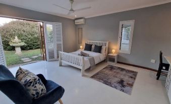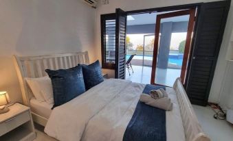 The nearest airport is King Shaka International Airport, just about 22 mins from hotel by car (22.0 km) away.Which airport is closest to Spacious and secure modern home with exquisite views?