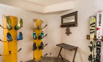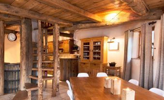 Cosy chalet "Arosa". 1 km from the centre of Val d'Isère. In the house: hot tub, storage room for skis. Parking at the house. Shop 1 km, restaurant 1 km. Ski lift 1 km, ski school 1.5 km. Please note: the photograph shows a typical example. "Arosa", 6-room chalet 200 m2 on 4 levels. Tasteful and wooden furniture furnishings: luggage room. Upper floor: 2 rooms, each room with 1 double bed and bath/WC. 2 rooms, each room with 1 double bed and bath/WC. Exit to the balcony. 2nd upper floor: living/dining room with open-hearth fireplace and dining table. Exit to the balcony. 1 room with 1 double bed and shower/WC. Open kitchen (oven, dishwasher, 4 ceramic glass hob hotplates, toaster, kettle, freezer, electric coffee machine, raclette grill). 3nd upper floor: open gallery with sloping ceilings with satellite TV. Electric heating. Wooden floors, natural stone floors. 3 balconies. Marvellous view of the mountains. Facilities: washing machine, dryer. Internet (WiFi, free). Please note: non-smoking house. Instead of an enclosed bedroom, some sleeping areas are located in an open-plan area (gallery, alcove, etc.).