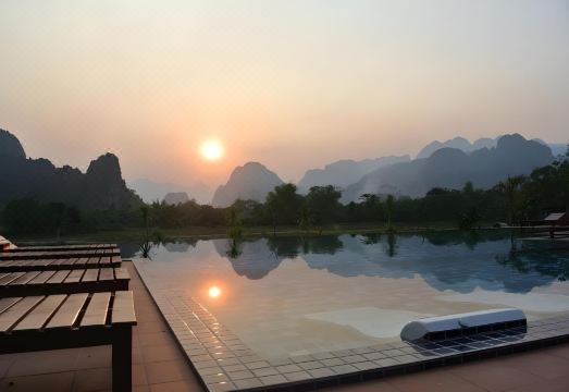 There is a swimming pool, but it wasn’t particularly inviting due to insects in the water—I didn’t see anyone use it during my stay. On the bright side, the view of the mountains is beautiful and offers a peaceful backdrop.