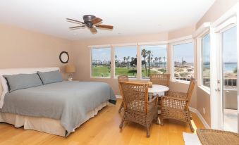 Moving up to the expansive second floor, you will be greeted by a beautiful living space with panoramic views of the ocean, park, and harbor. The second floor features a fully equipped kitchen, fireplace, dining table that seats 10, and large balcony with built-in BBQ. The second-floor master suite includes a king bed, large bathroom with bathtub, and walk-in closet.