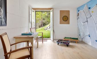 This is a comfortable, sunny apartment with own garage and separate playroom and area to service your skis. Walking paths leave from the front of the house. Ski bus to Medran lifts and the village takes 7 minutes and is in walking distance, thoug it is a