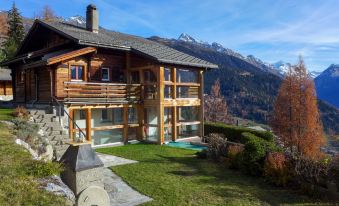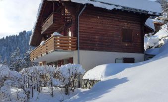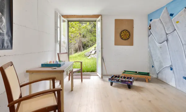 3-family house "Haimavati", 3 storeys, surrounded by meadows and fields. In the district of Patier, 1.8 km from the centre, in a quiet, sunny position, in a cul-de-sac, south facing position. For shared use: children's playground. Private: children's playground. In the house: storage room for bicycles, storage room for skis, central heating system. Motor access to the house. 4x4 car recommended in winter. Communal covered parking. Shop 1.8 km, grocery 1.8 km, restaurant 1.5 km, bus stop "et Skibus gratuit" 100 m. Sports centre 800 m, gondola lift 2 km, skisport facilities 2.5 km, ice rink 800 m. "Haimavati", 3-room apartment 60 m2, on the ground floor, south facing position. Partly renovated in 2019, practical and beautiful furnishings: living/dining room. Exit to the garden. 1 room with 1 french bed (1 x 160 cm, length 200 cm). 1 room with 2 beds (90 cm, length 200 cm). Kitchenette (oven, 3 ceramic glass hob hotplates, microwave, fondue Set (cheese)). Bathroom. Small garden. Terrace furniture, barbecue, conservatory. Panoramic view of the mountains and the valley. Facilities: Internet (WiFi, free). Please note: non-smokers only.