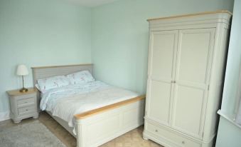 Bedroom One has a double bed. It is large, airy and has a four seater round table for playing games, working or eating meals. This room has ample space for suitcases, and a large wardrobe for hanging clothing and further storage, and a full length mirror.
