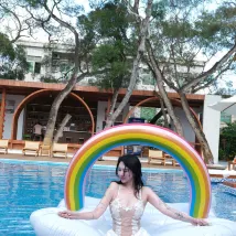 🏊🏻♀️After eating, go to the swimming pool in the yard to play. The water is clean and clear. There are also various paddle boards, surfboards, small rainbow inflatable beds, flamingo swimming rings~ Play for an afternoon~