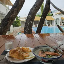 This Langqi Shesu B&B in Wanning has a very good environment! The swimming pool is also very clean. The lights at night are also very beautiful, suitable for taking pictures. The environment upstairs and downstairs is good. I feel good sitting down to eat something and enjoy the breeze. I am very grateful. They give away free goodnight milk and various drinks every day. Breakfast can be Chinese or Western. They also buy our favorite breakfast for my family! The service is very thoughtful and enthusiastic, and they recommend nearby restaurants for us. In short, I am very satisfied and must give a thumbs up! I will come again if I have the chance in the future.