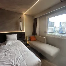 Friendly reception staff, clean room. Our room was on the 7th floor, and it was very noisy on Fri & Sat with several bars and clubs down on the road. The sauna was a bit miserable. It’s gendered but we found a couple hanging out in the male sauna room.