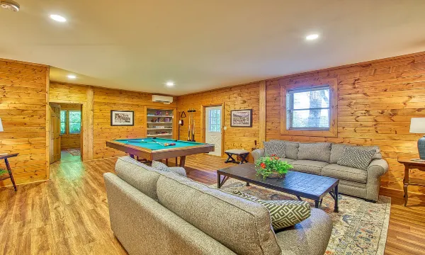 This newly renovated vacation home features 4 spacious bedrooms, including a primary suite, with 3 full bathrooms. A beautiful great room with gas logs, wrap around porch and spectacular mountain views. In addition, a fully equipped gourmet kitchen, game room with pool table and an elevator for easy access between levels. This authentic log home, which sits high in the Smoky Mountains, is just a quick drive to Historic Downtown Waynesville. Enjoy the outdoor stone patio, fire pit and gas grill.