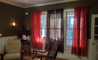In the center of Waynesville lies a delightful one-bedroom holiday house, perfect for a comfortable stay during your mountain escape. As you step inside, you'll be welcomed by the inviting living space, featuring a microwave, coffee maker, and a dining table - perfect for enjoying take out meals. Unwind in the comfort of the air-conditioned or heated interior, where you'll find essential amenities like a bathroom, towels, and a hair dryer. Spend your evenings relaxing on the porch, or challenge your companions to a friendly game night with the provided games. Venture out and explore the nearby attractions, such as the Cataloochee Ski Area, just a 22-minute drive away, the Blue Ridge Parkway Balsam Entrance just 9 minutes away, and the Wheels Through Time Museum, a 13-minute drive from your doorstep. With the convenience of on-site parking and the comfort of high-speed WiFi, this vacation home is the perfect base to experience the beauty and adventure of the Waynesville area.About pets:No pets allowed.About checkOut:Check out before 11:00 AM.About children:Children allowed: ages 0-17.About checkIn:Check in after 4:00 PM.About smoking:Smoking is not permitted.About minBookingAge:Minimum age to rent: 21.About events:No events allowed.