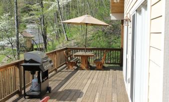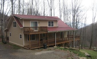 This mountain home features hardwood floors, a 21' ceiling, central AC and Heat, Gas Fireplace and over 1,900 square feet of living area. Situated minutes from downtown Waynesville, NC we are located in the heart of mountain country. The property features 2 brooks that run down either side of the house and open wooded views with paved road access right to the front door. Gas Fireplace and Covered Porches. Balcony off Master Bedroom. Bring your laptop, we have high speed internet access to keep you in touch with family, friends or the office! Internet TV uses a Roku player (Guest Access) and requires your own sign-in or account.