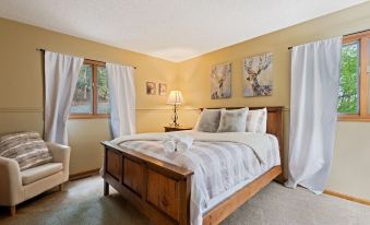 Lanfyne Ayr offers 3 bedrooms and 3 full bathrooms, comfortably sleeping up to 11 guests. There are extra trundel beds in the lower level. The "Theme Room" on the lower level boasts a propane fireplace. The "Game Room" on the lower level has a ping-pong table.