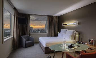 Pullman at Sydney Olympic Park is a unique 5 star hotel located 180m from Accor Stadium in the dynamic sports, entertainment, business and technology hub that is Sydney Olympic Park. The upscale hotel offers business travellers 218 rooms, meeting rooms for up to 220 people and wireless Internet in all areas. Enjoy panoramic views of Sydney, toast your success in the chic wine bar and savour contemporary Australian cuisine in Bacar restaurant.