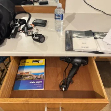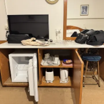 The bed was comfortable and the room was very spacious which was good. There was plenty of hanging space and drawers to use. Tv and fridge worked well.