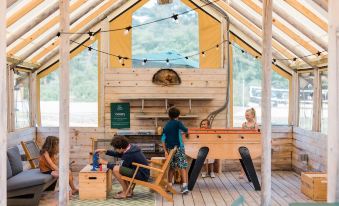 Second time for us at huttopia. We love the place. The outdoor pool and the lake are awesome for kids and adults to swim. We loved the lake platform. The tents are well equipped. The food is great with food pizzas, crepes and smoothies. Perfectly located closed to amazing hikes.