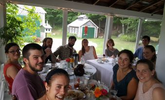 We stayed at this wonderful, small (four rooms) B&B while attending a wedding. Neysa (knee-sa) and Kimball greeted us warmly and showed us around. Our room was comfy and the shared bathroom was well appointed. The wraparound screen porch was a relaxing place to sit and read. They asked when we would like to be served breakfast and had french press coffee left out for us until then. In the morning, juices, fresh rolls and various (lilac, grape, peach, pear) home made jams were laid out. At 9:00, Kimball fixed yummy blueberry pancakes and homemade sausage. We walked the property, with fruit trees and a veggie garden that supplied our breakfast. The barn also hosts folk and jazz musicians about once a week during the summer. Kimball has experience as a manager and shared great stories of musicians he knew over the years, many of which we had enjoyed seeing perform. Our two night stay was wonderful and we are pleased to recommend a stay at the Farmstand.