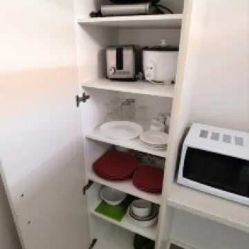 The accommodations are satisfactory, but several straightforward enhancements could significantly improve the overall guest experience. Specifically, the inclusion of functional drawers, a practical wardrobe, and a modern television with Wi-Fi and the capability to access personal streaming subscriptions (e.g., Netflix, Prime) would be beneficial. Furthermore, incorporating a small table to utilize the enclosed balcony and upgrading the plastic outdoor chairs at the dining table would enhance the amenities.