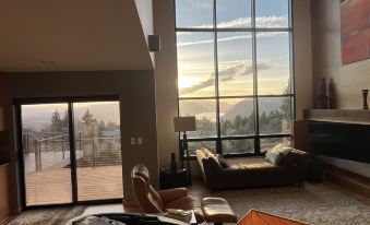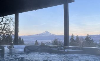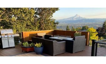 We welcome you to come enjoy some peace and quiet in our lovely modern home with private spa experiences. Enjoy unparalleled views of Mt. Hood, the Hood River Valley and our majestic west facing view down the Columbia River Gorge from almost every room and deck. Situated just one mile outside of downtown White Salmon, WA, you will feel like you're in a special rural environment. We welcome you to your home away from home. This home is a 3 level, recently remodel home built in 2007. The entry level is the main level and has a dining area, a kitchen, a living room (all with amazing mountain and river views) a half bath and a mud room/ pantry. You can walk out this level onto an expansive deck with outdoor furniture a gas grill and a gas fire pit. Enjoy breathtaking views while you relax or dine! Upstairs you will find the master suite with sitting / TV area and ensuite full bath with soaking tub, beautiful tile shower and a 2 sink vanity. A loft area separates the staircase and the master suit and has an office desk with chair and 2 twin beds for additional guests. The 2 twin beds are listed as beds in the 3rd bedroom, but are actually located in the loft. Below the main level is the media room, bedroom number 2 with a king bed and bedroom number 3 with a queen bed. There is also a full bath and the laundry room on this floor. Walk out this level and you can enjoy the outdoor hot tub....with views, the private sauna....with views and the outdoor shower...with views. Please message us to ask about staying for less than our 3 day minimum and we will always try to accommodate last minute requests. Walking our neighborhood is a dream and our proximity to all recreation the Gorge has to offer is amazing. Come, stay, play and relax in style. We also have a one bedroom casita above our detached two car garage that may be available if you have the need to accommodate additional guests. The link is here;