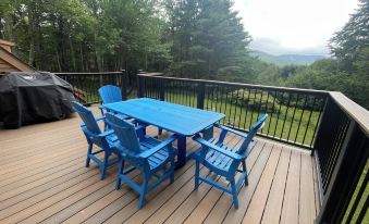 Our home has 4 bedrooms and 3 full bathrooms. The upper level of the home has an open concept layout with an updated kitchen, dining area with seating for 8 (plus 3 counter stools), living room with fireplace, and master bedroom with full bath (shower/tub). There is a mudroom as you enter for shoes, equipment, etc. The deck is located off the main living area and includes a grill and an outdoor dining table with views of the mountain. Firewood is available for use in the wood shed on the side of the house.