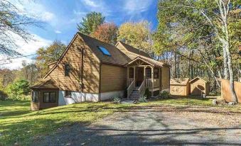 Our charming timber frame home offers a unique aesthetic appeal - a harmonious combination of rustic warmth and modern function. This mountain retreat offers flowing open spaces throughout. Vaulted pine tongue & groove ceilings, exposed wood beams, and a blue stone fireplace that compliments the home's rustic elements and wood floors. Skylights allow for bright-inviting spaces. The home is set on a private 2.5 acre lot surrounded by trees, while offering the convenience of town only several minutes down the road.