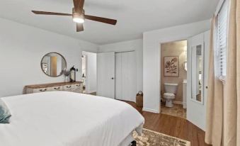 We know you will get a great night's rest when sleeping in The Jockey Suite. With 3 bedrooms & 4 beds, there is plenty of room for everyone! The owner's suite offers a king bed & a half bath. The secondary bedroom has 2 twin beds & the third bedroom has a queen bed. All linens are provided!