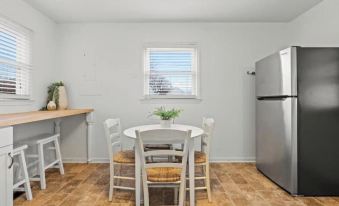 The Jockey Suite offers a fully stocked kitchen with your basic cooking utensils for you to prepare & enjoy your favorite meals. The kitchen table has 4 seats & the bar has 2 stools for everyone to eat at!