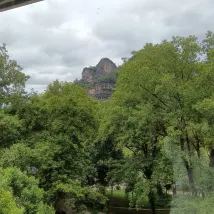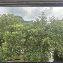 The room view is superb: Next to Dawangfeng (Mt.) & river. It is also nearby to eating streets.