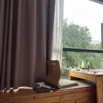 The B&B was excellent and very quiet. We booked a family room with a view, and upon entering, a large window offered a lovely view of lush green trees, making the room wonderfully bright. The ground floor of the B&B was also peaceful, where guests could brew tea, and there were craft activities for children.