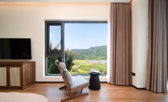 Nestled in the mountains of Huangling, this neo-Chinese style guesthouse is built against the hills, offering tranquility amidst bustle. With a 360° unobstructed panoramic view, it unlocks a natural getaway far from the hustle and bustle. Push open the window to embrace rolling green mountains, terraced flower fields, morning mist shrouding the hills, and golden sunsets melting into the horizon. Every sight is an unfiltered healing landscape that instantly relieves the fatigue of urban life.
