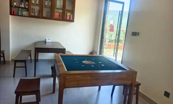 The guesthouse features log-based decoration, exuding a warm and elegant neo-Chinese charm. Wooden-textured tables and chairs paired with simple yet sophisticated soft furnishings create a living space blending zen and comfort. Central air conditioning ensures constant temperature comfort across all seasons. The smart home system allows one-touch control of lights, curtains, and air conditioning, integrating convenience into every travel detail. Some rooms are upgraded with oversized floor-to-ceiling windows, bringing mountain scenery indoors for a cozy embrace with nature while lying down. Luxury bathtubs paired with quality toiletries wash away travel tiredness. High-definition projectors with surround sound, combined with premium skin-friendly bedding, guarantee sweet dreams after an audio-visual feast each night.