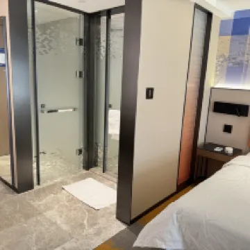 Came to Xi'an on a business trip and saw that this Hampton Inn had a high rating, so I booked it for 2 nights. To be objective, I don't think it deserves such a high score. Advantages: 1. It has not been opened for long and the facilities are relatively new. The hygiene is good, the shower has a strong flow and it is comfortable to take a bath. 2. The location is good, there are Hema and many restaurants downstairs, and MixC is opposite, which makes it very convenient for eating and shopping. Disadvantages 1. The bathroom is open (see pictures 1 and 2). It will be awkward if you don't live alone. After you shower you are left naked facing the other people in the room. Although there is a small partition, it is only 30-40 cm wide and does not serve as a shield. 2. I lived in room 1319. There was a strong smell of cooking smoke in the room starting at 8:30 in the morning, which gradually disappeared around 10:30. There is no such smell in the corridor or outside the window. I suspect that the air-conditioning duct and the restaurant's fume duct are intersecting, causing the smell. 3. The hotel is on a higher platform with stairs all around. Whether you want to take a taxi to the hotel or leave the hotel, vehicles cannot drive up, which is very unfriendly to travelers with suitcases. I called a special car, but found that it could not locate the hotel entrance at all. I could only drag the suitcase for a long way to the roadside, and the surrounding roads were very difficult to walk (see Figure 3). They were full of various bicycles and electric vehicles. It took a long detour to get to the roadside, and the sidewalk was full of ditch bumps. It was really annoying to drag a big box. 4. Maybe because the room price is relatively cheap, the quality of the guests is mixed. During breakfast, a man sneezed loudly several times in a row at the food pick-up area, and he didn't even cover his mouth... I can't imagine how much saliva was on the food.