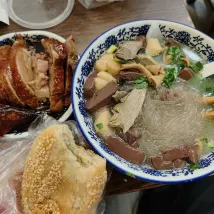 * 'Lao Ma Jia Pao Mo' in the adjacent alley, known for its rich broth and tender meat.