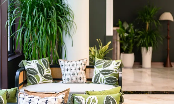 The hotel features a Southeast Asian-style luxurious retro design. The lobby boasts metallic-textured walls paired with Minnan-style decorative elements, exuding a sophisticated vibe. Rooms use dark green and warm brown as the main color tones, complemented by retro patterned tiles and rattan furniture, highlighting elegance. Some rooms are equipped with a large white bathtub and a garden balcony, offering a bird's-eye view of the Zhongshan Road street scene. The hotel also adopts smart butler devices such as a whole-house voice control system, ensuring a more convenient and comfortable stay.