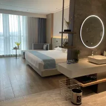 The room was nice. We upgraded to a deluxe king-size bed room for free. The room was spacious and had smart control equipment, which was very convenient. The location of the hotel was also good and it was very convenient for travel. It is worth recommending.