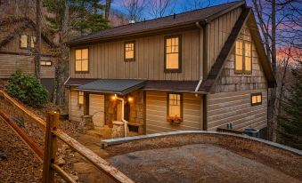 Indulge in luxury mountain living at Whispering Falls Cabin, a country club home with a hot tub. Balance your busy vacation days with relaxation time at the beautiful Mountain Air Country Club, a private, gated community with an elevation of 5,000 feet at the top of Slickrock Mountain. Whispering Falls reflects the natural landscape with long-range scenic views, surrounding forest, and the sound of a running stream from the nearby waterfall.