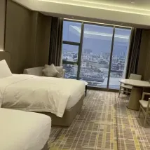 The hotel faces East Lake, and it is probably the newest and best hotel in Yangchun. The lake view room faces East Lake Park, and the environment is beautiful. The check-in experience is comfortable, the room is clean, spacious and bright. The hotel has a variety of dining options. The air conditioning in the room is too strong, and there is no heating. I hope it can be improved. You can walk 100 meters downstairs to East Lake for a walk and leisure. Next door is RT-Mart Commercial Street, which is convenient and fast for shopping. A little further away is the old neighborhood, and there are many old-fashioned restaurants and dessert shops nearby.