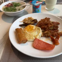 The hotel is just opposite the East Lake Park, next to the shopping mall. It should be in the city center. I didn't expect that the hotel in a county town in Yangchun is of such a high standard 👍, which is better than many star-rated hotels in Guangzhou. The room is large and the facilities are new. The floor-to-ceiling windows are also very grand. There are many varieties of breakfast and it is delicious. The breakfast is really eye-catching. The chicken feet, beef offal and pig intestines are all very fresh☺️☺️☺️